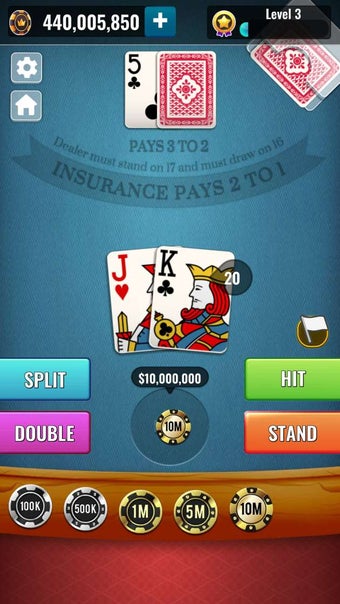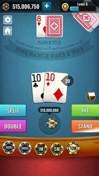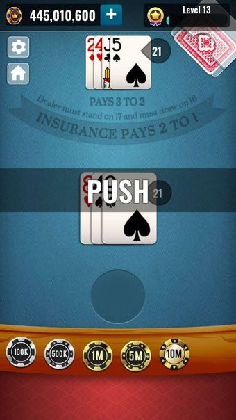 Gra oferuje autentyczne doświadczenia blackjacka, w tym opcje podwajania, dzielenia, ubezpieczenia oraz rezygnacji. Zastosowano animację tasowania kart, co podnosi realizm gry. Użytkownicy mogą korzystać z podpowiedzi opartych na strategiach blackjacka oraz monitorować swoje statystyki. Gra jest prosta w obsłudze i idealna dla osób, które chcą nauczyć się, jak pokonać kasyno, nie angażując się w hazard na prawdziwe pieniądze.